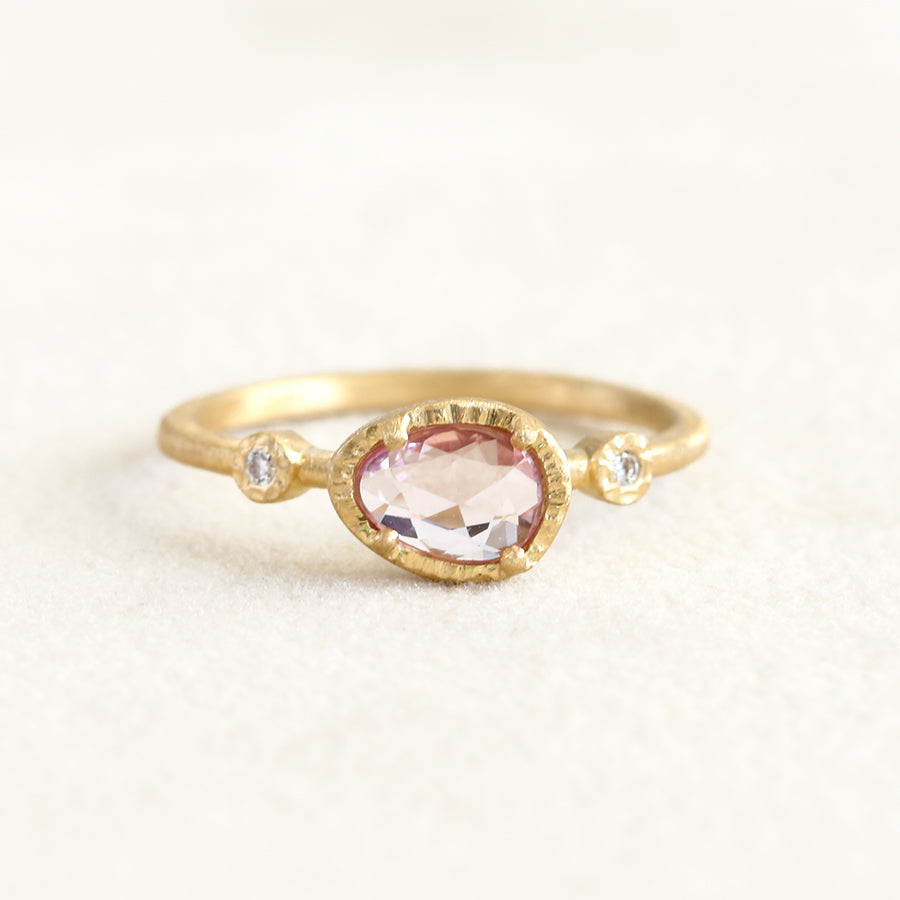 0.53ct pink sapphire Muguet ring, 0.03ct diamonds as accent, brushed finish.